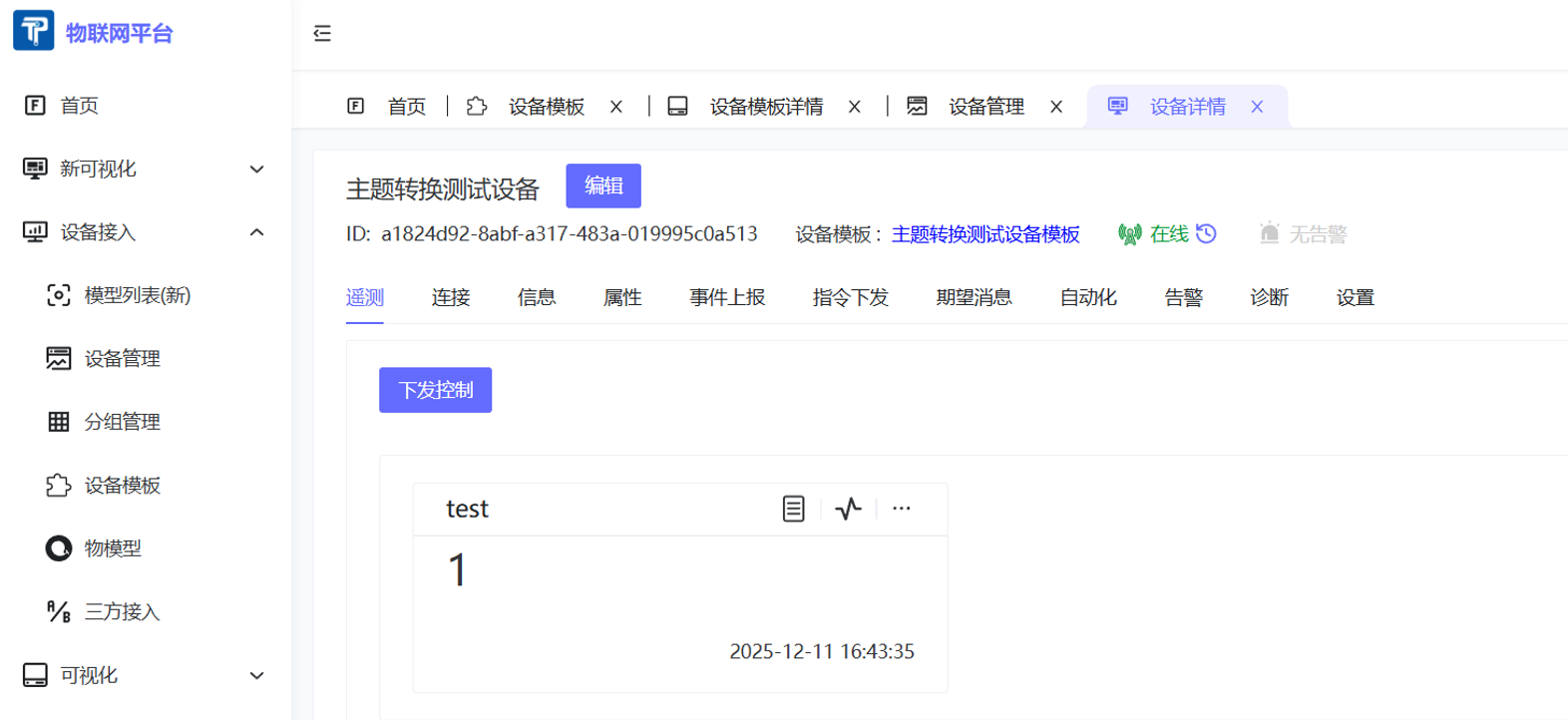 接入进来之后,就能实现如下图所示的上报和控制功能。